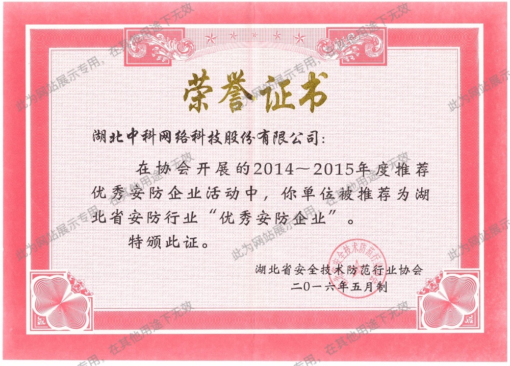 • 湖北省優秀安防企業