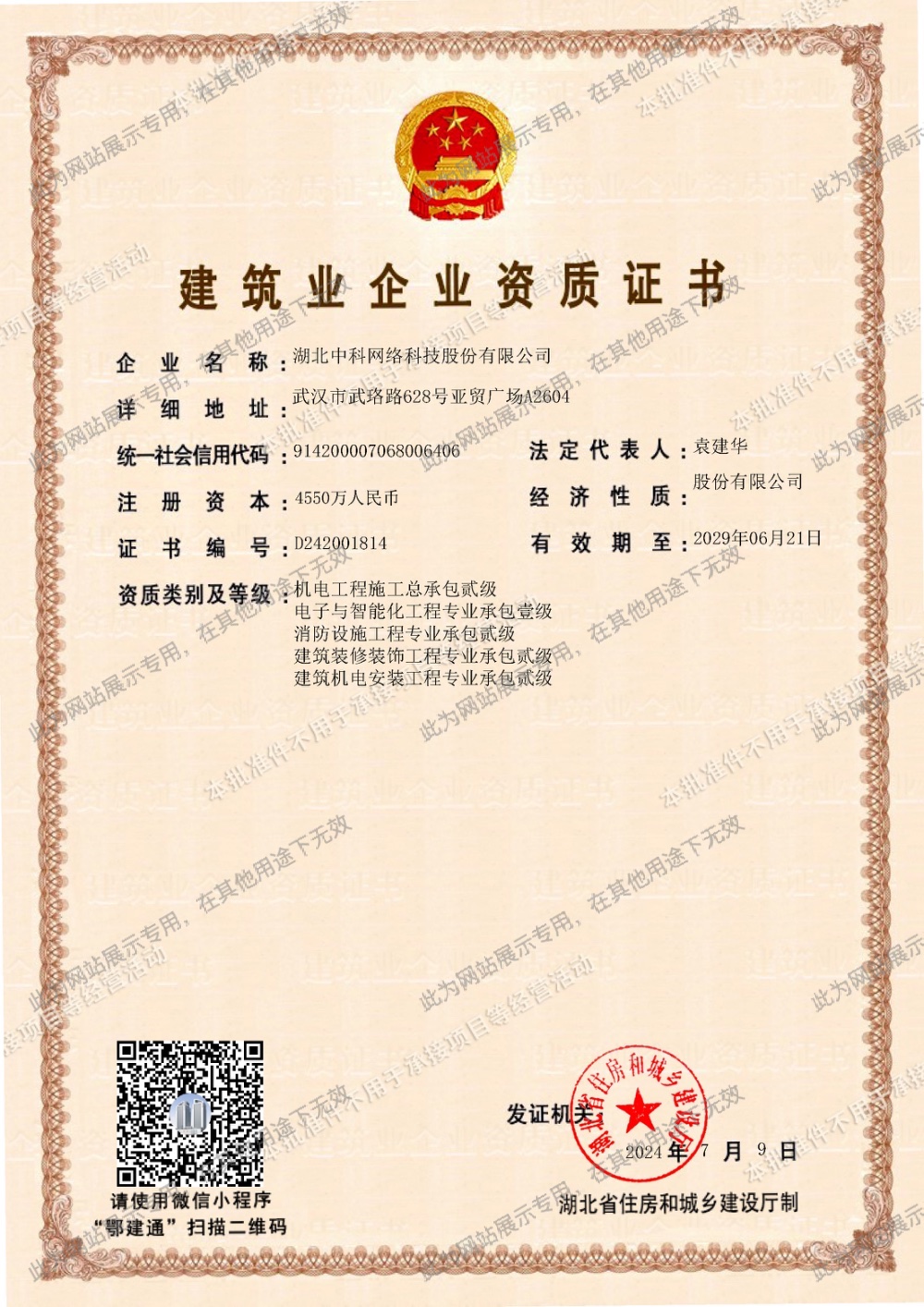 • 國家電子與智能化工程專業承包壹級