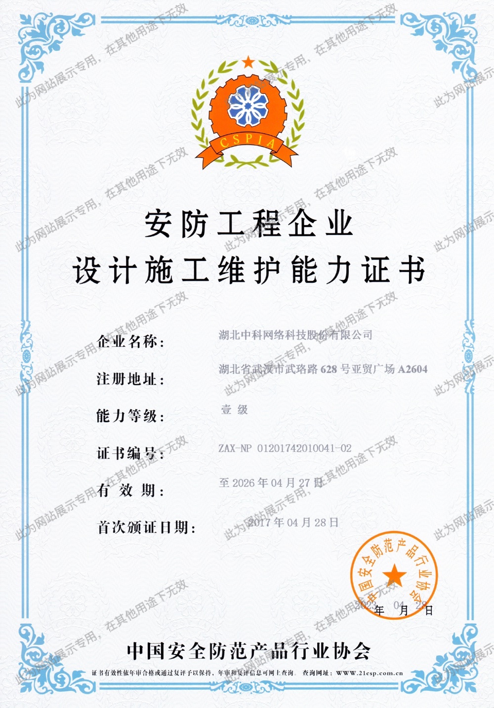 • 國家安防工程企業壹級資質